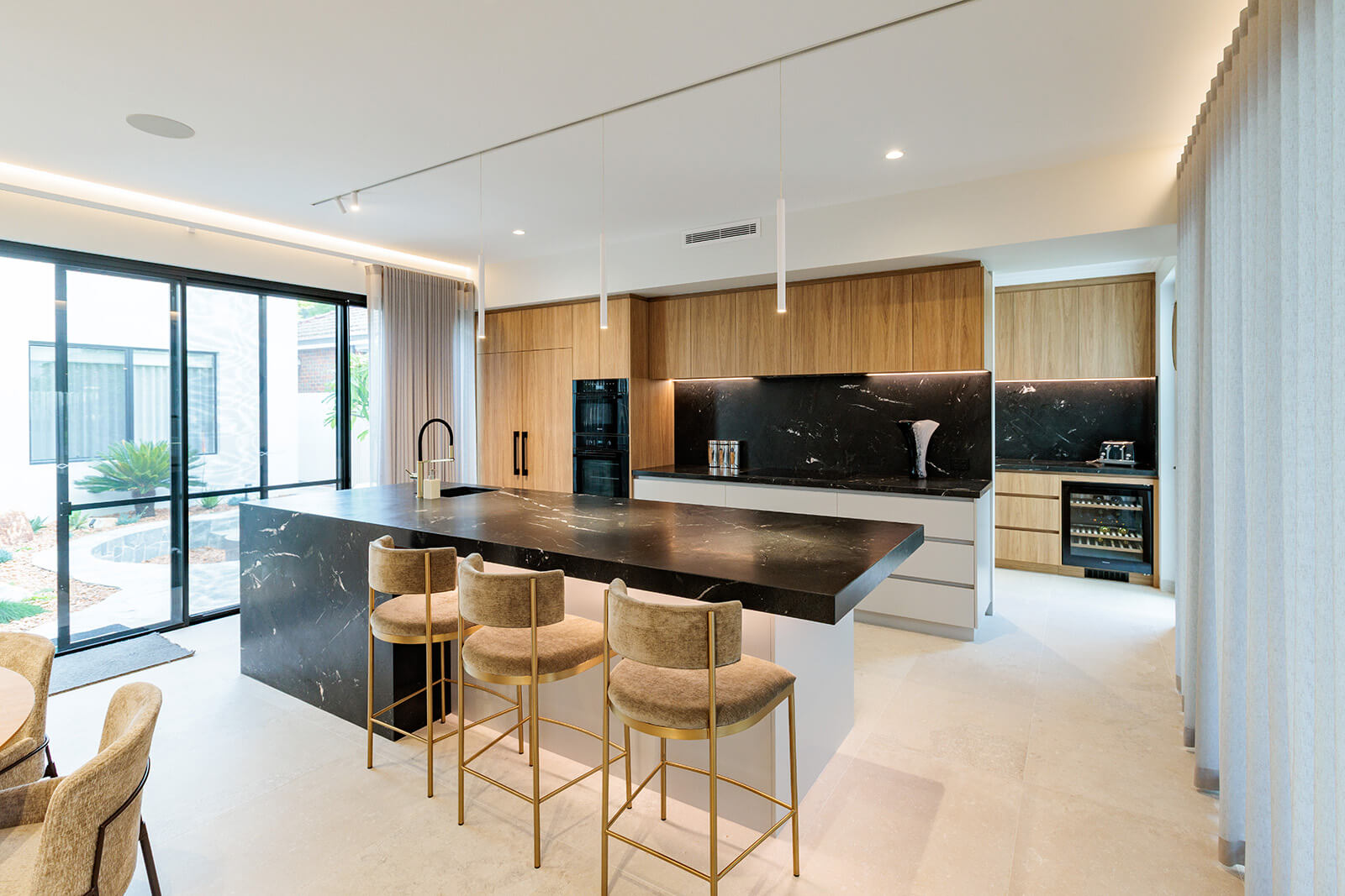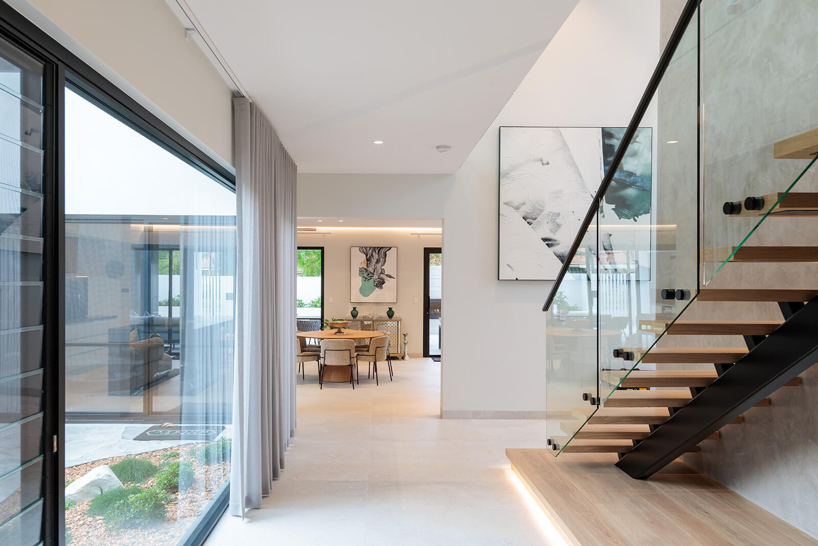 Prepare to be captivated by the bold and striking elevation of this home, offering a glimpse of the extraordinary interiors that await inside. As you step through the entrance, you’ll be greeted by an awe-inspiring central courtyard, accompanied by a magnificent timber floating staircase. Every aspect of this family home is beautifully proportioned, exuding a luxurious ambiance and a seamless flow that delights entertainers. With a remarkable transition from indoor to outdoor spaces, this residence effortlessly brings the best of modern living to the forefront.